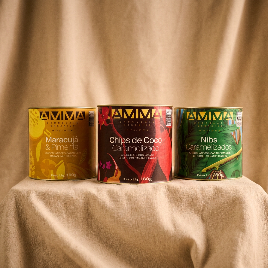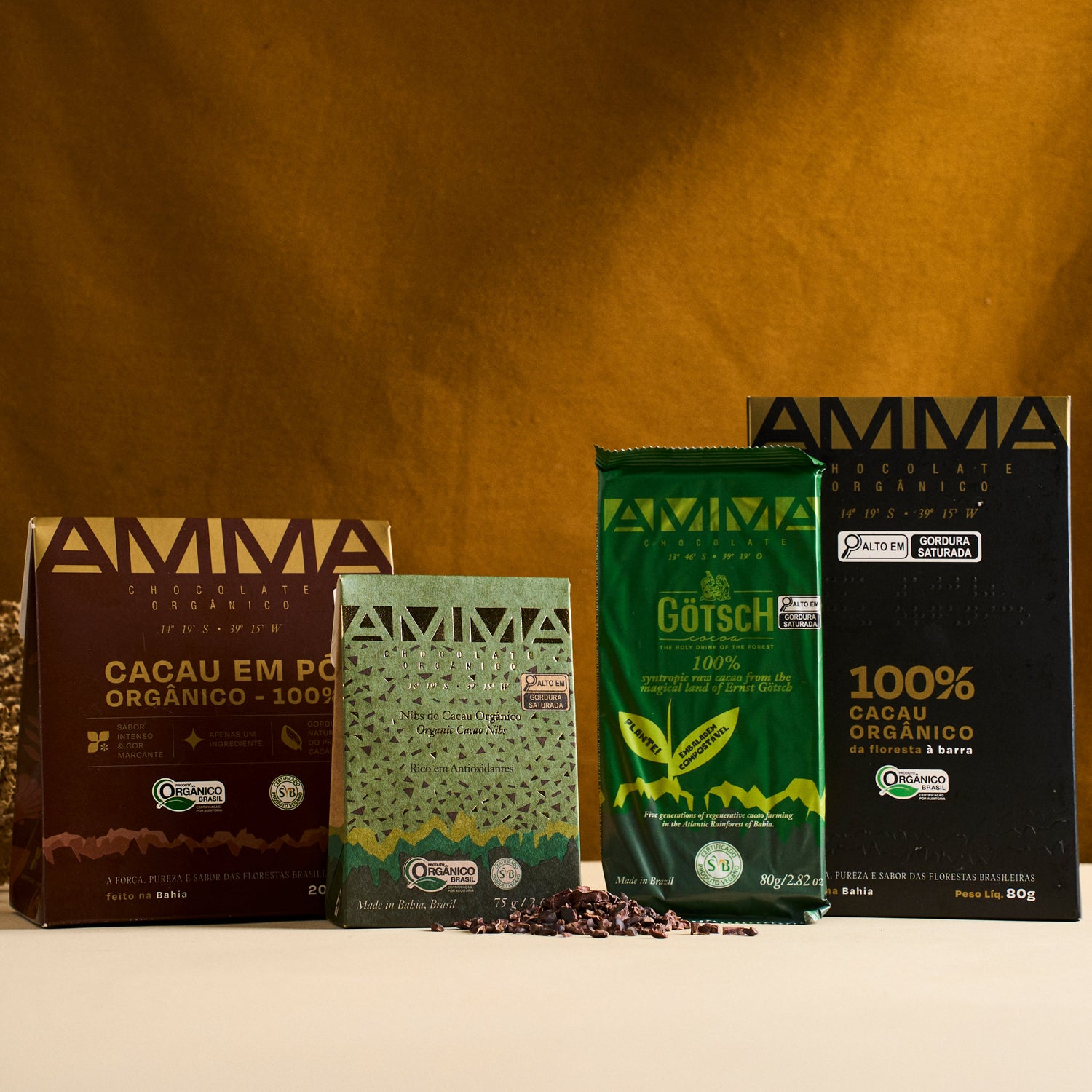 Linha 100% cacau, sem açúcar, orgânica e vegana — intensidade e autenticidade.