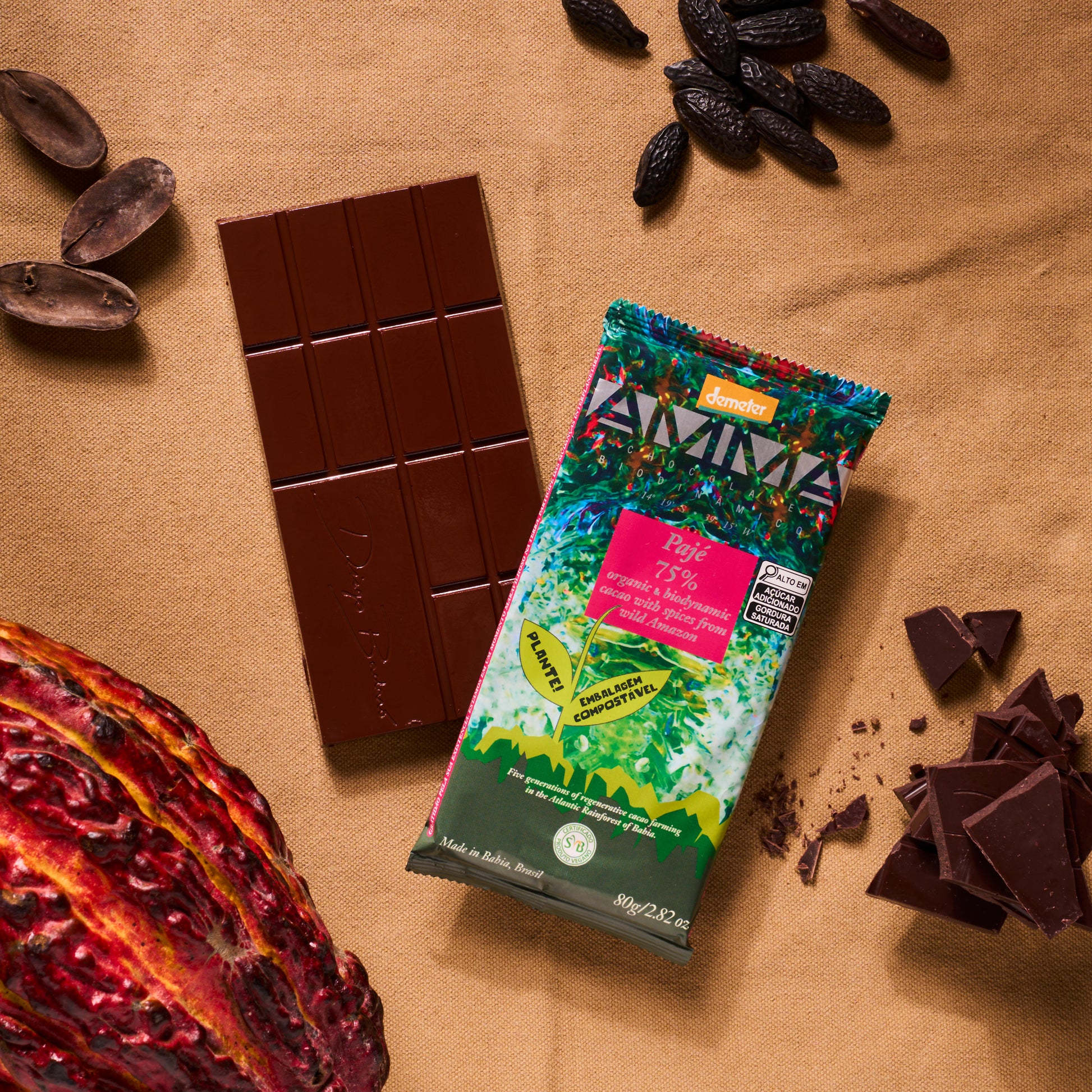 Chocolate Biodinamico Pajé 75% Cacau Com Especiarias Da Amazônia 80G