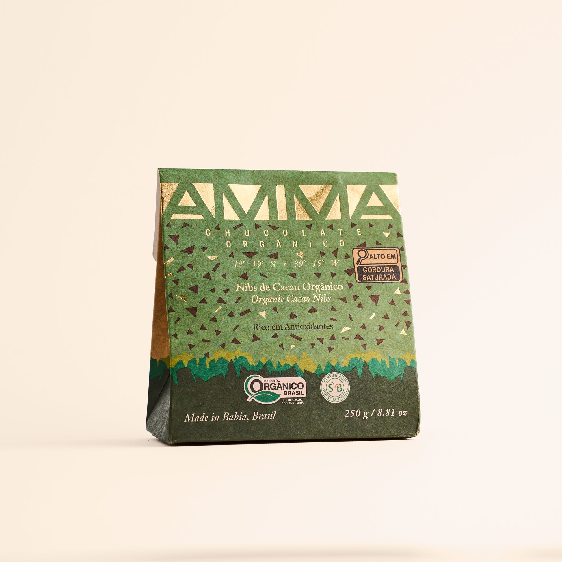 Amêndoas de cacau descascadas, levemente torradas e trituradas. Os nibs de cacau são crocantes, de sabor intenso e contêm uma carga altíssima de antioxidantes e minerais.